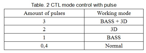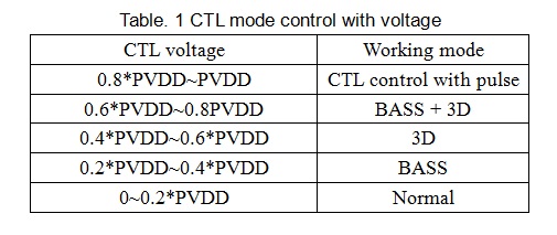 但CTRL拉高至PVDD(如上表1),在CTRL引腳輸入不同脈沖數(shù),即可進(jìn)入不同的工作模式,如下表: