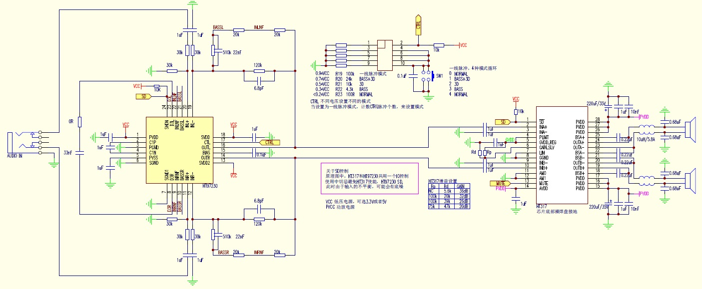 1,采用HT97230作為前端運(yùn)放及音效處理