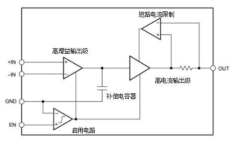 啟用電路(ENC)可在放大器處于啟用或關閉模式時保持對輸入級和輸出級的控制。啟用后,ENC能夠平穩(wěn)地轉換為驅動增益級和輸出級。關閉后,ENC能夠控制補償電容器的充電,并禁用增益級和輸出級。優(yōu)化進出關閉模式的過渡,可確保極小的電流注入到耳機負載中,從而最大限度減少噪音。