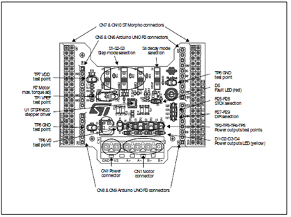 圖6.步進(jìn)馬達(dá)擴(kuò)展板X-NUCLEO-IHM14A1開關(guān)和連接器外形圖
