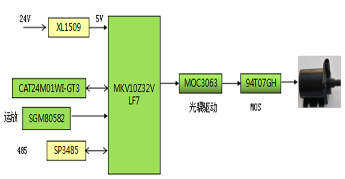 • MK60DN512VLL10通過光驅(qū)動MOC3063芯片和MOSFET94T07GH來實現(xiàn)電機的控制,可靠性強。