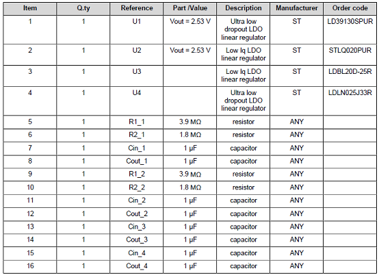 評(píng)估板STEVAL-LDO001V1材料清單: