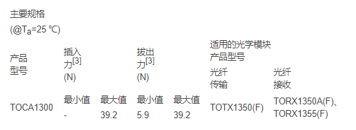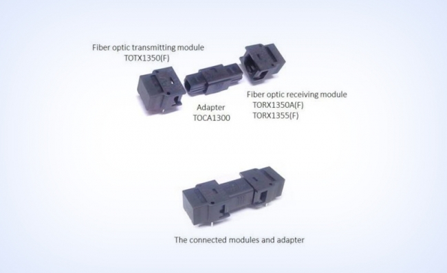 該款新產(chǎn)品為單向光模塊適配器,用于連接光纖傳輸模塊和光纖接收模塊進(jìn)行短距離數(shù)據(jù)傳輸。在需要比采用光電耦合器時(shí)的絕緣距離更長,以及比光纖電纜的傳輸距離更短的場合,TOCA1300可代替光纖。 該適配器與東芝光纖耦合器[2]相結(jié)合可實(shí)現(xiàn)光傳輸。