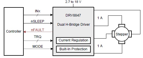 還提供了各種內部保護功能,如欠壓鎖定、每個 FET 的過流保護、短路保護、開路負載檢測和過熱保護等。故障狀態(tài)通過 nFAULT 引腳指示。I2C 器件版本 (DRV8847S) 提供詳細診斷。