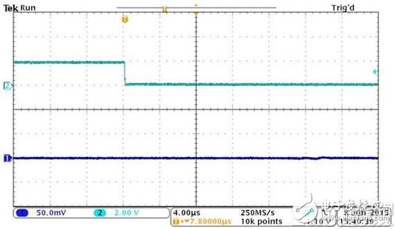 圖3和圖4分別顯示了OPA1622在啟用和禁用期間的性能。只有極小的輸出瞬態(tài)會(huì)伴隨啟用或禁用的過(guò)程。輸出瞬態(tài)發(fā)生的時(shí)間極短,因此使用耳機(jī)時(shí)聽(tīng)到的可能性不大。