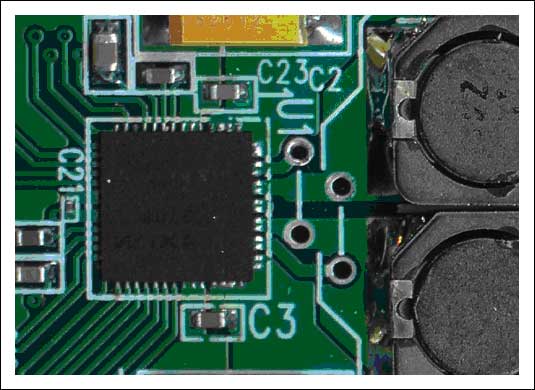 盡量加寬所有與器件的連線,這將有益于改善系統(tǒng)的散熱性能。雖然IC的引腳并不是主要的散熱通道,但實(shí)際應(yīng)用中仍然會(huì)有少量發(fā)熱。圖3給出的PCB中,采用寬的連線將D類放大器的輸出與圖右側(cè)的兩個(gè)電感相連。在這種情況下,電感的銅芯繞線也可為D放大器提供額外的散熱通道。雖然對(duì)整體熱性能的改善不到10%,但這樣的改善卻會(huì)給系統(tǒng)帶來兩種截然不同的結(jié)果—即使系統(tǒng)具備較理想的散熱或出現(xiàn)較嚴(yán)重的發(fā)熱。