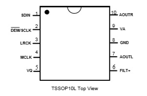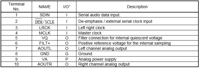 該系列產(chǎn)品基于一個(gè)多比特位的Δ-Σ調(diào)制器,將數(shù)字信號(hào)轉(zhuǎn)化成兩個(gè)聲道的模擬信號(hào)并經(jīng)過模擬濾波器濾波。該Δ-Σ調(diào)制器對(duì)時(shí)鐘抖動(dòng)的敏感度很低,且在帶寬范圍外具有極低的噪聲。其還可使用采樣率和主時(shí)鐘比作為自采樣率(2kHz – 200kHz),從而實(shí)現(xiàn)自動(dòng)檢測(cè)采樣頻率的功能。