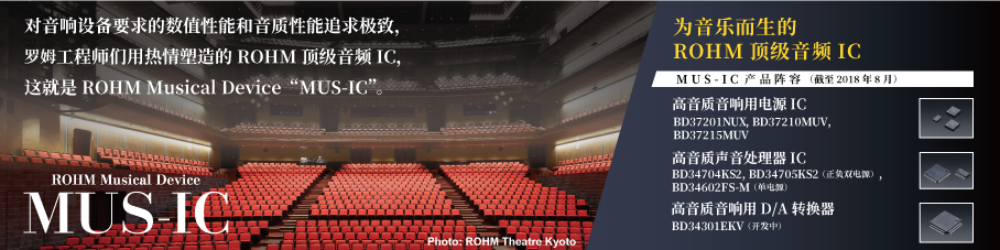 ROHM Musical Device “MUS-IC”是在ROHM的企業(yè)特色——“品質(zhì)第一”、“為音樂文化的普及與發(fā)展做貢獻”、“垂直統(tǒng)合型生產(chǎn)”基礎(chǔ)上,融合前述的“音質(zhì)設(shè)計技術(shù)”開發(fā)而成的,是ROHM的音質(zhì)負責人帶著自信推出的ROHM頂級音頻IC專用的音頻產(chǎn)品新品牌。