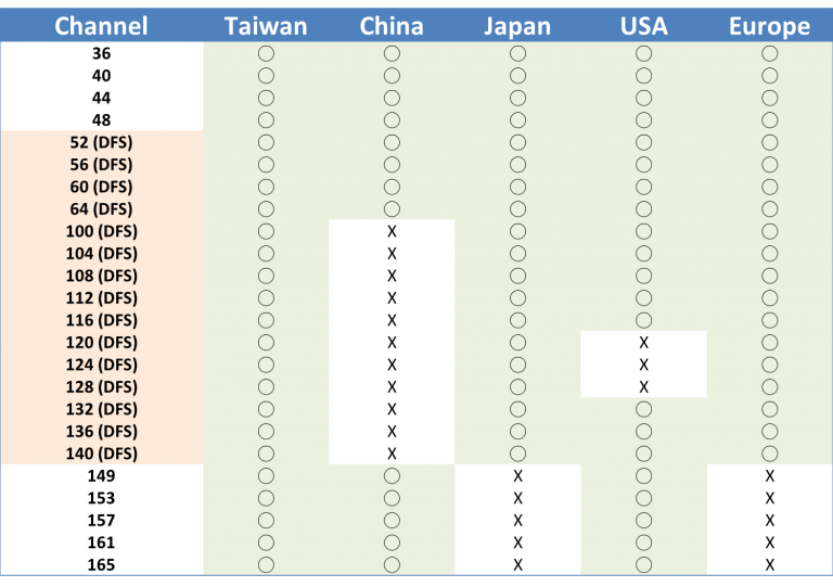 DFS這項認(rèn)證會要求使用5GHz頻段的Wi-Fi產(chǎn)品,當(dāng)偵測到同頻段雷達信號時,要自動切換到其他頻道;每個國家開放的5GHz頻道不一樣,有些國家有著較強的抗干擾技術(shù),會開放比較多的頻段,有些國家則開放較少、甚至沒有。