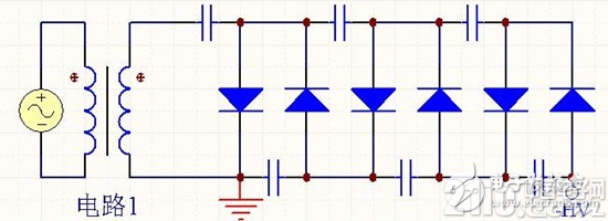 用于倍壓整流電路的二極管,其最高反向電壓應(yīng)大于 ?捎酶邏汗枵鞫,其系列型號(hào)為2DL。如2DL2/0.2,表示最高反向電壓為2千伏,整流電流平均值為200毫安。倍壓整流電路使用的電容器容量比較小,不用電解電容器。電容器的耐壓值要大于1.5x ,在使用上才安全可靠。 |