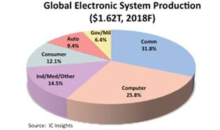 整體來看,2018年全球電子系統(tǒng)的市場價值可望達(dá)到1.62兆美元。該公司并預(yù)期汽車電子系統(tǒng)將占9.4%,略高于去年的9.1%。