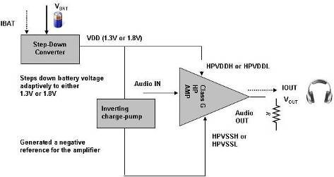 這種電源電壓為自適應(yīng)型。它在高音量音頻信號(hào)時(shí)升高,從而防止大峰值電壓失真,同時(shí)在小音頻峰值時(shí)下降來(lái)降低功耗。