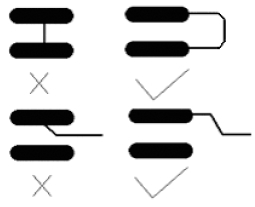 同一網(wǎng)絡(luò)的布線寬度應(yīng)保持一致,線寬的變化會(huì)造成線路特性阻抗的不均勻,當(dāng)傳輸?shù)乃俣容^高時(shí)會(huì)產(chǎn)生反射,在設(shè)計(jì)中應(yīng)該盡量避免這種情況。在某些條件下,如接插件引出線,BGA封裝的引出線類似的結(jié)構(gòu)時(shí),可能無法避免線寬的變化,應(yīng)該盡量減少中間不一致部分的有效長(zhǎng)度。