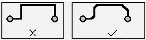 PCB設(shè)計(jì)中應(yīng)避免產(chǎn)生銳角和直角, 產(chǎn)生不必要的輻射,同時(shí)工藝性能也不好。