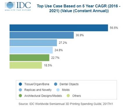 此外,在醫(yī)療保健領(lǐng)域,(4)到2022年,75%的新3D打印機(jī)將支持具有凝膠和橡膠等特性的新材料,從而帶來(lái)與3D打印產(chǎn)品相關(guān)的20億美元新支出。