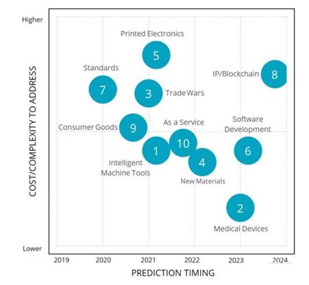 如前所述,分析師預(yù)測(cè)(3)貿(mào)易戰(zhàn)和自動(dòng)化 到2021年,將有超過(guò)40%的制造商推動(dòng)3D打印。