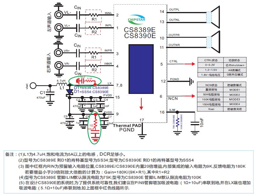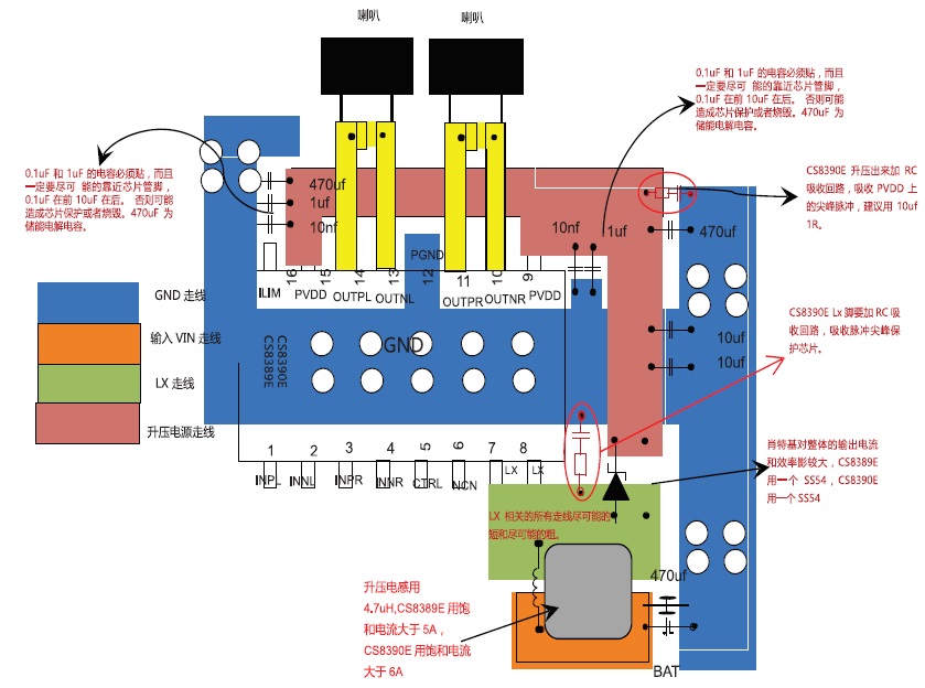 CS8389E/CS8390E 內置升壓4.8W、6.6W雙聲道音頻功放IC PCB Layout注意事項