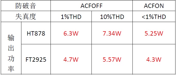 FT2925對比HT878內(nèi)置升壓雙聲道音頻功放IC對比測試報告