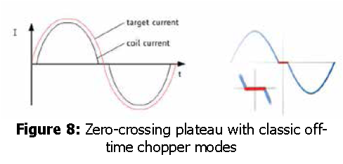 噪音和振動(dòng)的另外一個(gè)來(lái)源是傳統(tǒng)的斬波方式和脈寬調(diào)制(PWM)模式,由于比較粗的步距分辨率是產(chǎn)生振動(dòng)和噪音的主要因素,我們通常忽視了斬波和PWM帶來(lái)的問題.