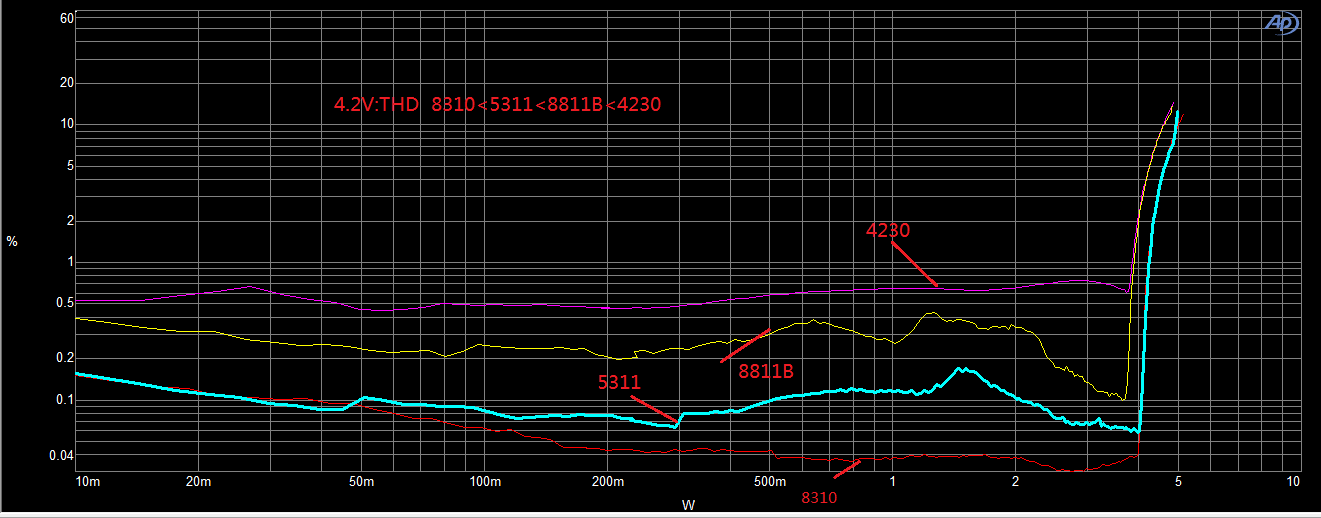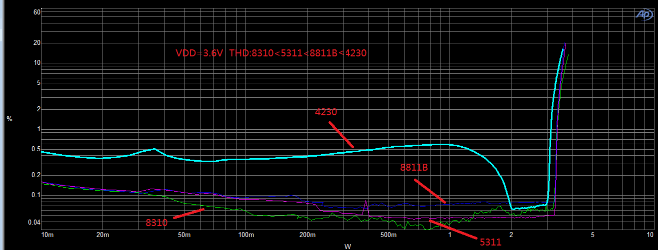 THD失真度對(duì)比測(cè)試: