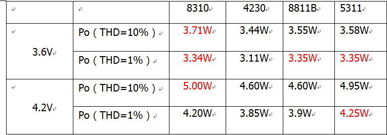 5.2W/2.8V-5.5V(內(nèi)置電荷泵無(wú)電感升壓模塊)/4Ω |