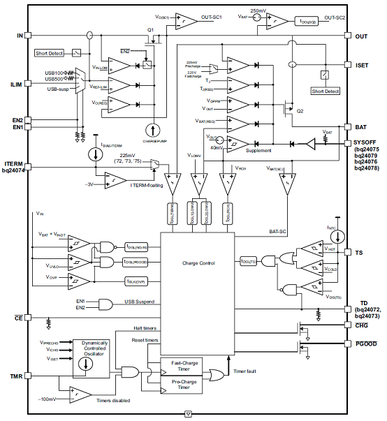 圖1.bq24078功能框圖
