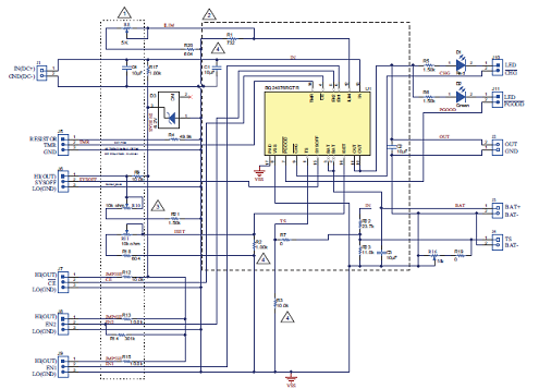 圖4.評估模塊bq24076/8 EVM電路圖