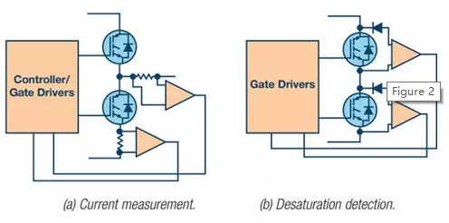 無(wú)論出于財(cái)產(chǎn)損失還是安全方面的考量,針對(duì)過(guò)流條件的IGBT保護(hù)都是系統(tǒng)可靠性的關(guān)鍵所在。IGBT并非是一種故障安全元件,它們?nèi)舫霈F(xiàn)故障則可能導(dǎo)致直流總線電容爆炸,并使整個(gè)驅(qū)動(dòng)出現(xiàn)故障。過(guò)流保護(hù)一般通過(guò)電流測(cè)量或去飽和檢測(cè)來(lái)實(shí)現(xiàn)。