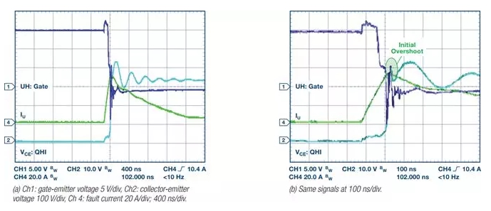 一般而言,電機(jī)可在相對(duì)較長(zhǎng)的時(shí)間內(nèi)(毫秒到秒,具體取決于電機(jī)尺寸和類(lèi)型)吸收極高的電流;然而,IGBT——工業(yè)電機(jī)驅(qū)動(dòng)逆變器級(jí)的主要部分——短路耐受時(shí)間為微秒級(jí)。