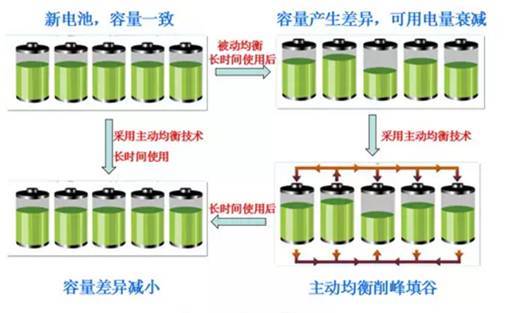 主動均衡充電時將多余電量轉(zhuǎn)移至高容量電芯,放電時將多余電量轉(zhuǎn)移至低容量電芯,可提高使用效率,但是成本更高,電路復雜,可靠性低。未來隨著電芯的一致性的提高,對被動均衡的需求可能會降低。