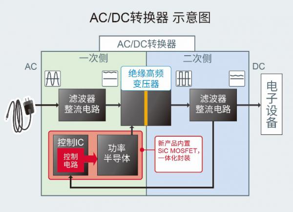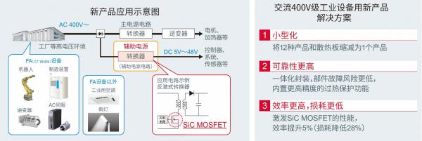 近年來,隨著節(jié)能意識的提高,在交流400V工業(yè)設(shè)備領(lǐng)域,相比現(xiàn)有的Si功率半導(dǎo)體,可支持更高電壓、更節(jié)能、更小型的SiC功率半導(dǎo)體的應(yīng)用越來越廣。而另一方面,在工業(yè)設(shè)備中,除了主電源電路之外,還內(nèi)置有為各種控制系統(tǒng)提供電源電壓的輔助電源,輔助電源中廣泛采用了耐壓較低的Si-MOSFET和損耗較大的IGBT,在節(jié)能方面存在很大課題。