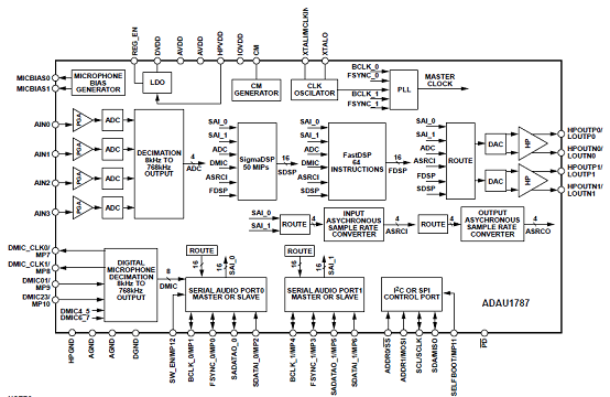 ADAU1787具有兩個(gè)DSP的CODEC音頻解決方案