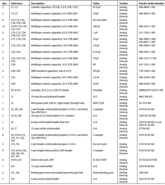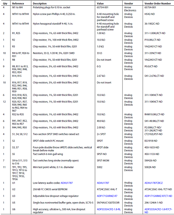 評(píng)估板EVAL-ADAU1787Z材料清單: