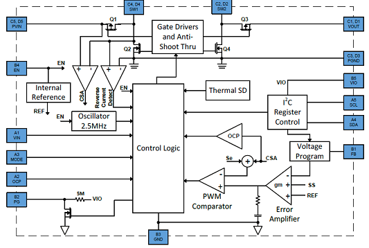 輸入電壓范圍VIN:2.7V-13V;輸出電壓范圍VOUT:4.5V-13V;可編程峰值電流:10A.