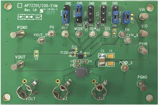 圖5.評(píng)估板AP72200-EVM PCB設(shè)計(jì)圖:頂層