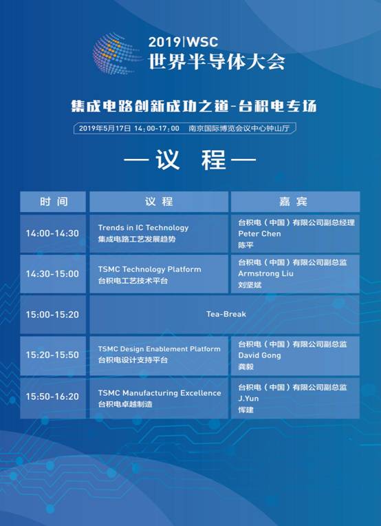 除了發(fā)布新工藝引起業(yè)界轟動(dòng)之外,臺(tái)積電最近又有大動(dòng)作啦!于2019年5月17日-19日在南京國際博覽中心舉辦的世界半導(dǎo)體大會(huì)上,臺(tái)積電會(huì)舉辦集成電路創(chuàng)新成功之道-臺(tái)積電專場的開放式論壇。在臺(tái)積電專場活動(dòng)上,臺(tái)積電(中國)有限公司副總經(jīng)理陳平、臺(tái)積電(中國)有限公司副總監(jiān)劉堅(jiān)斌、臺(tái)積電(中國)有限公司副總監(jiān)龔毅、臺(tái)積電(中國)有限公司副總監(jiān)惲建等臺(tái)積電企業(yè)高管均會(huì)蒞臨論壇現(xiàn)場分享在他們眼中的集成電路創(chuàng)新成功之道。