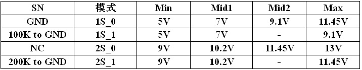 請(qǐng)根據(jù)供電方式以及需要的最高升壓,合理設(shè)置SN的狀態(tài)。詳見(jiàn)下表。1S_X模式最低默認(rèn)升壓5V;2S_X模式最低默認(rèn)升壓9V;分別對(duì)應(yīng)適合單節(jié)鋰電和雙節(jié)鋰電供電應(yīng)用。