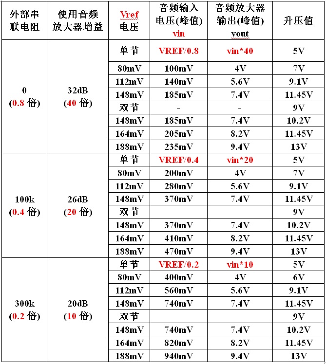 當(dāng)AUDIO IN Vin(peak)= VREF * 80k/(Rin+100k) 時(shí),輸出電壓跳變。