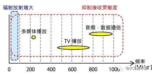 A:在無線充電器中,如圖2所示,①充電過程中低于100MHz的低頻帶中輻射放射(被釋放到空間的噪聲)變大,②充電過程中播放電視或者音頻,數(shù)據(jù)通信的接收靈敏度變差,會(huì)發(fā)生這兩種噪聲問題。
