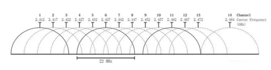 2.4GHz頻段可分為14個(gè)WLAN信道,除了第14號(hào)信道與第13信道間隔了12MHz外,其余每個(gè)信道之間的間隔均為5MHz,而IEEE 802.11標(biāo)準(zhǔn)規(guī)定,每一個(gè)信號(hào)都需要占用20MHz(實(shí)際上是22MHz)的頻寬,相當(dāng)于5個(gè)WLAN信道,因此當(dāng)無(wú)線路由器占用2.4GHz頻段的某個(gè)信道時(shí),以該信道為中心共計(jì)5個(gè)WLAN信道都會(huì)納入到該路由器所使用的范圍內(nèi)。舉例說(shuō)明,當(dāng)路由器占用2.4GHz頻段的第4號(hào)信道時(shí),其實(shí)際上已經(jīng)占用了第2至第6號(hào)共計(jì)5個(gè)信道,因此在2.4GHz頻段下實(shí)際占用的信道比需要使用的信道要多出一些,所以2.4GHz頻段更加容易占滿。