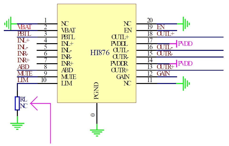 5. RL=0R,防破音關(guān)閉。
