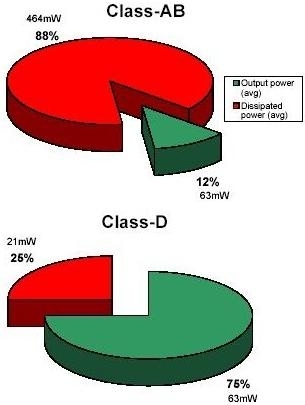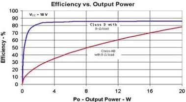 D類放大器的效率與AB類放大器的比較
