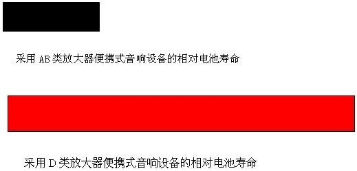D類放大器的高效率最明顯地表現在利用電池作為電源的便攜式設備中。這通常也是這類產品的一個最大賣點。就像手機的待機時間一樣,所有便攜式音響設備,像隨身聽、MP3、等等,采用D類音頻放大器以后其工作時間就大大增加了。或者說其電池的續(xù)航時間大大增加了。通常要比采用AB類放大器增加2-3倍時間。這就不是什么10%到15%的不同,而是本質上的區(qū)別。