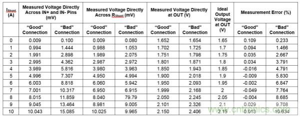 這運(yùn)用主要是要說明,并聯(lián)電阻檢測線連接很重要,不能隨意地進(jìn)行。從直接實(shí)驗(yàn)和觀察可以明顯看出,未經(jīng)優(yōu)化的檢測線連接引入了不可接受的誤差。同樣值得注意的是,在連接“錯(cuò)誤”的板上,在輸入引腳處測量的數(shù)據(jù)與在并聯(lián)電阻兩端測量的結(jié)果相比有很大的差異。并聯(lián)電阻兩端的測量結(jié)果與預(yù)期一樣,但直接在輸入引腳處的測量值則不是這樣。由于雜散電阻的增加,輸入引腳處的電壓較高。