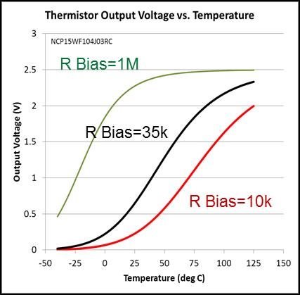 熱敏電阻的缺點(diǎn)是,只有在很窄的溫度范圍內(nèi),它的輸出才是線性和準(zhǔn)確的,而在這個范圍之外會變得非線性。圖2繪制了三條熱敏電阻的輸出曲線,偏置電阻分別為1MΩ、35kΩ和10kΩ。在窄溫度范圍內(nèi),每條曲線都是線性的,不過在偏置電阻分別為1MΩ、35kΩ和10kΩ,而溫度分別為10ºC、75ºC和50ºC以下時,這三條曲線為非線性。雖然針對特定溫度,可以使用專門校準(zhǔn)的熱敏電阻來實(shí)現(xiàn)目標(biāo)精度,但是這種熱敏電阻成本較高,并且這三款不同的器件也使得庫存管理變得過于復(fù)雜。其它缺點(diǎn)還包括無法預(yù)計的故障、抗擾度低和功耗較高。