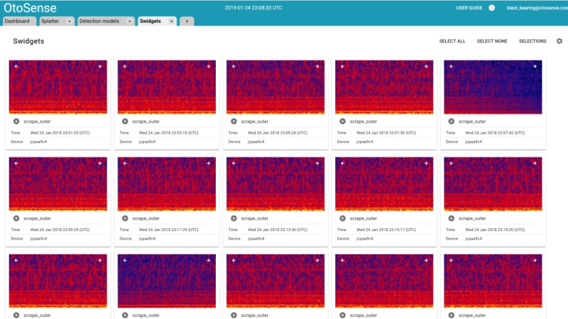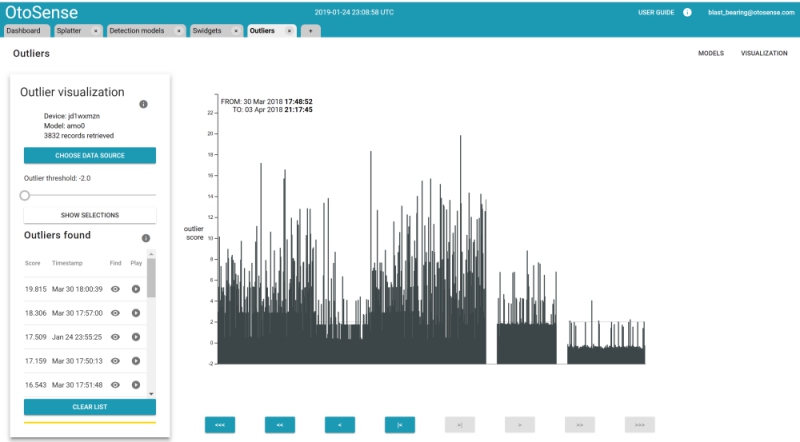 特征屬于物理領(lǐng)域,含義屬于人類認(rèn)知。要將特征與含義聯(lián)系起來,需要 OtoSense AI 和人類專家之間展開互動。我們花了大量時間研究客戶的反饋,開發(fā)出人機(jī)界面 (HMI),讓工程師能夠高效地與 OtoSense 交互,設(shè)計出事件識別模型。這個 HMI 允許探索數(shù)據(jù)、標(biāo)記數(shù)據(jù)、創(chuàng)建異常模型和聲音識別模型,并測試這些模型。