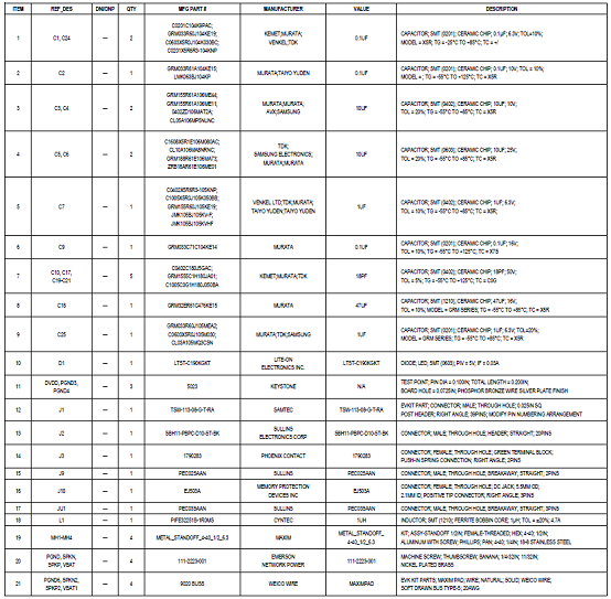 評(píng)估系統(tǒng)MAX98390 EVS材料清單: