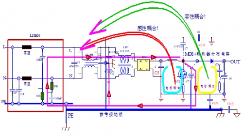 A.在上面的電路結(jié)構(gòu)中電感回路及輸出回路比較優(yōu)化,并且和交流輸入有足夠的距離時(shí);如果有EMI的問題請(qǐng)參考《開關(guān)電源:EMC的分析與設(shè)計(jì)》快速設(shè)計(jì)理論方案!