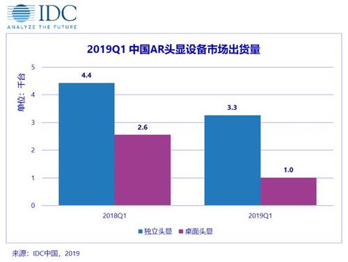 2019年第一季度,AR頭顯設(shè)備出貨量出現(xiàn)小幅回落,主要來(lái)自于產(chǎn)品迭代速度較慢,預(yù)計(jì)這一跌幅將在新產(chǎn)品進(jìn)入市場(chǎng)后得到扭轉(zhuǎn)。