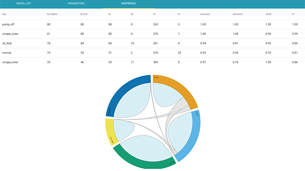 在任何時候,都可以創(chuàng)建異常模型或事件識別模型。事件識別模型是一個圓形的混淆矩陣,它允許 OtoSense 用戶探索混淆事件。
